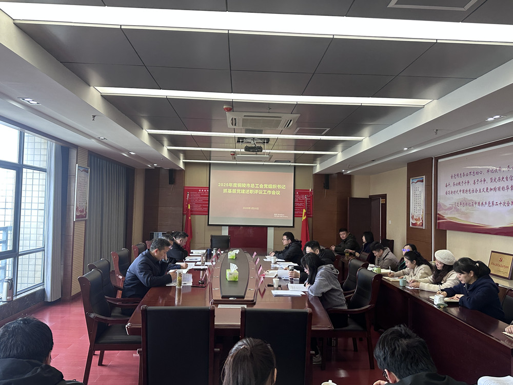 为深入学习贯彻习近平新时代中国特色社会主义思想和党的二十届历次全会精神,全面落实新时代党的建设总要求,压紧压实基层党建工作责任,推动党建工作与业务深度融合,3月20日上午,铜陵市总工会召开2025年度基层党组织书记述职评议会议,市总工会党组书记、副主席黄文进对各支部书记抓党建工作情况进行逐一点评并讲话,市总工会党组成员、副主席,机关党委书记慈勇主持会议,市总工会领导班子成员和机关全体党员参加会议。