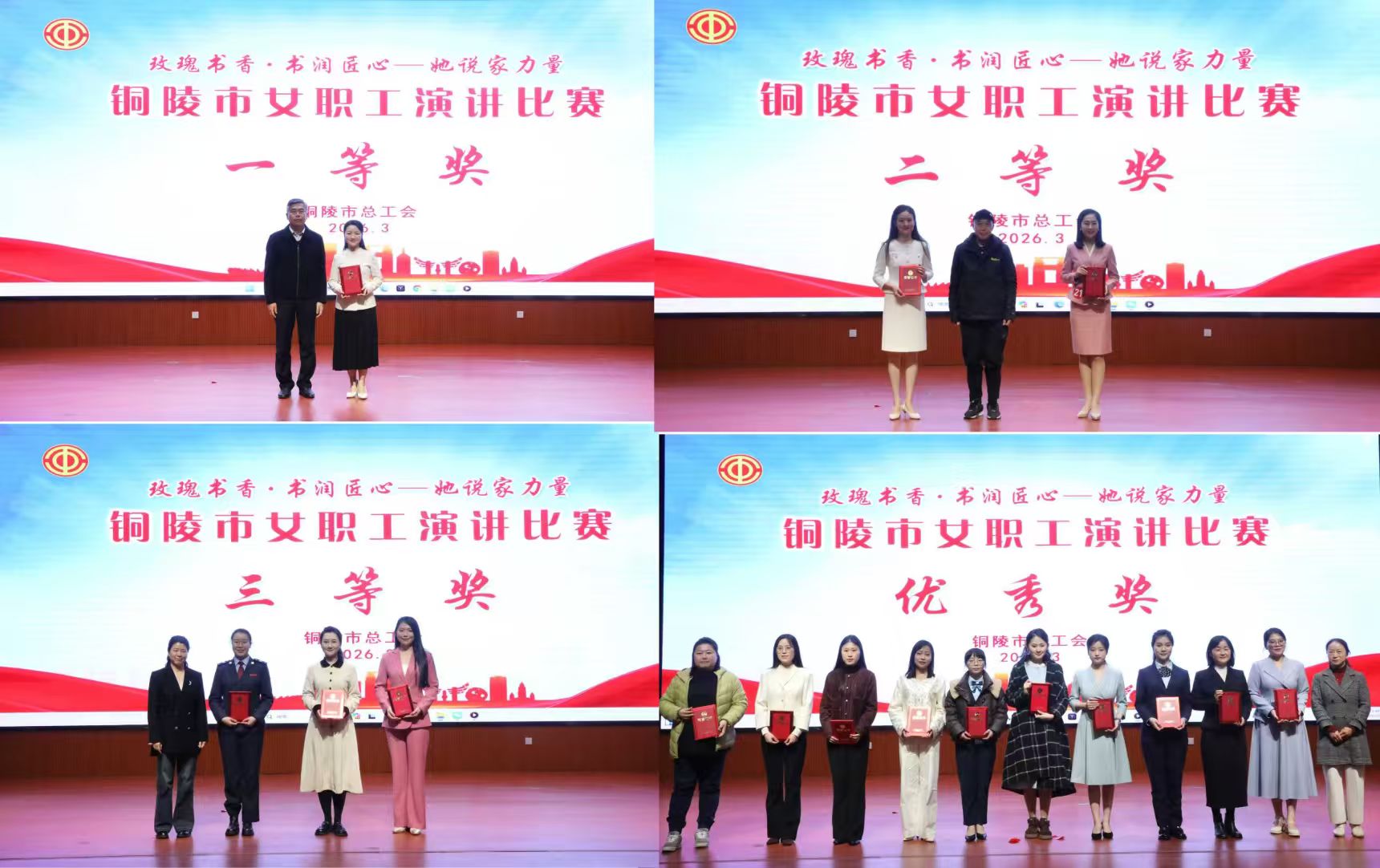 来自全市各行各业的27组优秀选手在铜陵市中级人民法院同台竞技。以“玫瑰书香·书润匠心—她说家力量”为主题,选手们围绕优良家风故事、廉洁齐家事迹生动讲述身边故事,分享各自家庭书香育人的深刻感悟,展现新时代女职工风采。经过激烈角逐,来自铜陵瑞莱科技有限公司的谈自凤凭借演讲《家有书香 心有暖阳》荣获一等奖,比赛还评选出二等奖2名、三等奖3名、优秀奖10名。